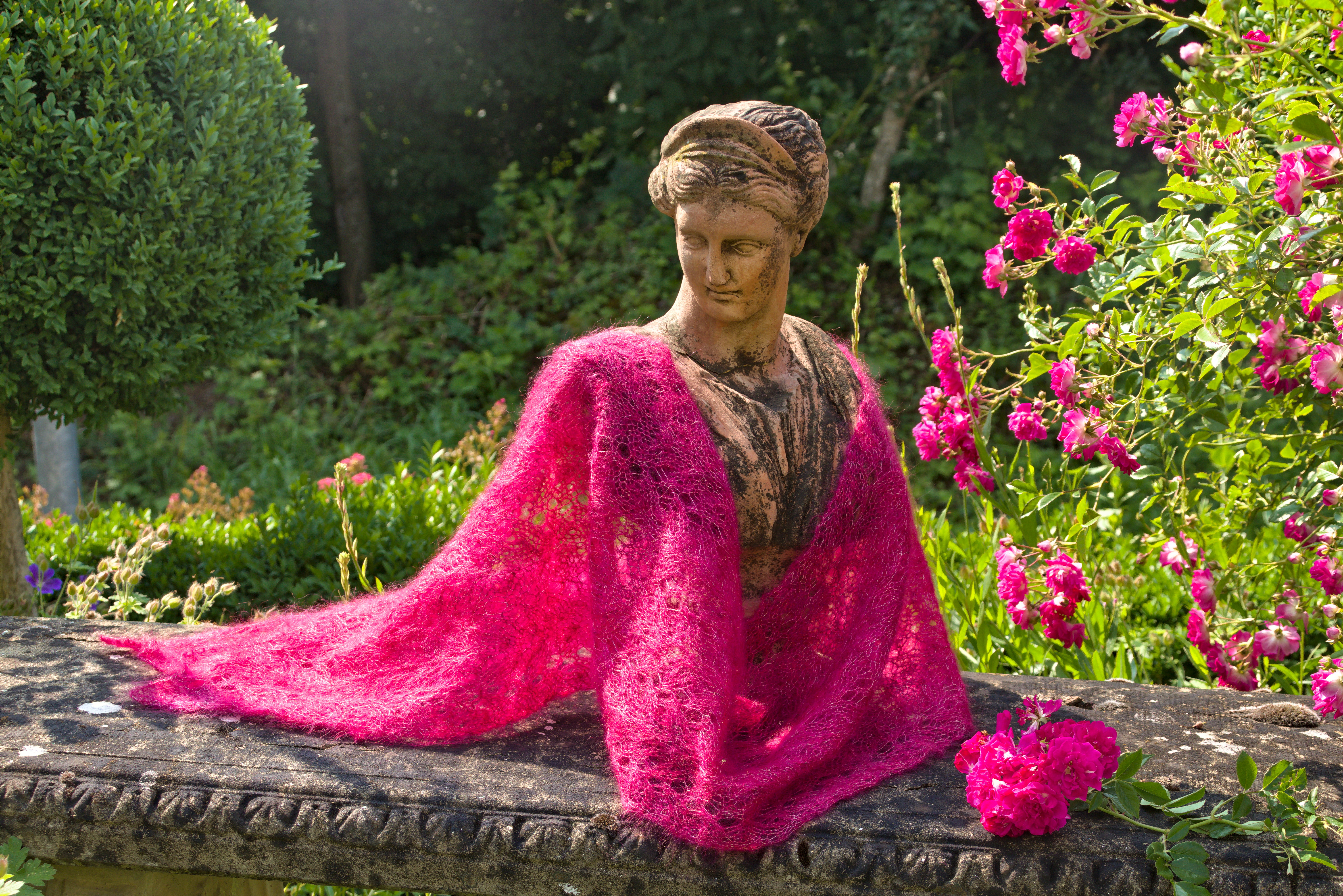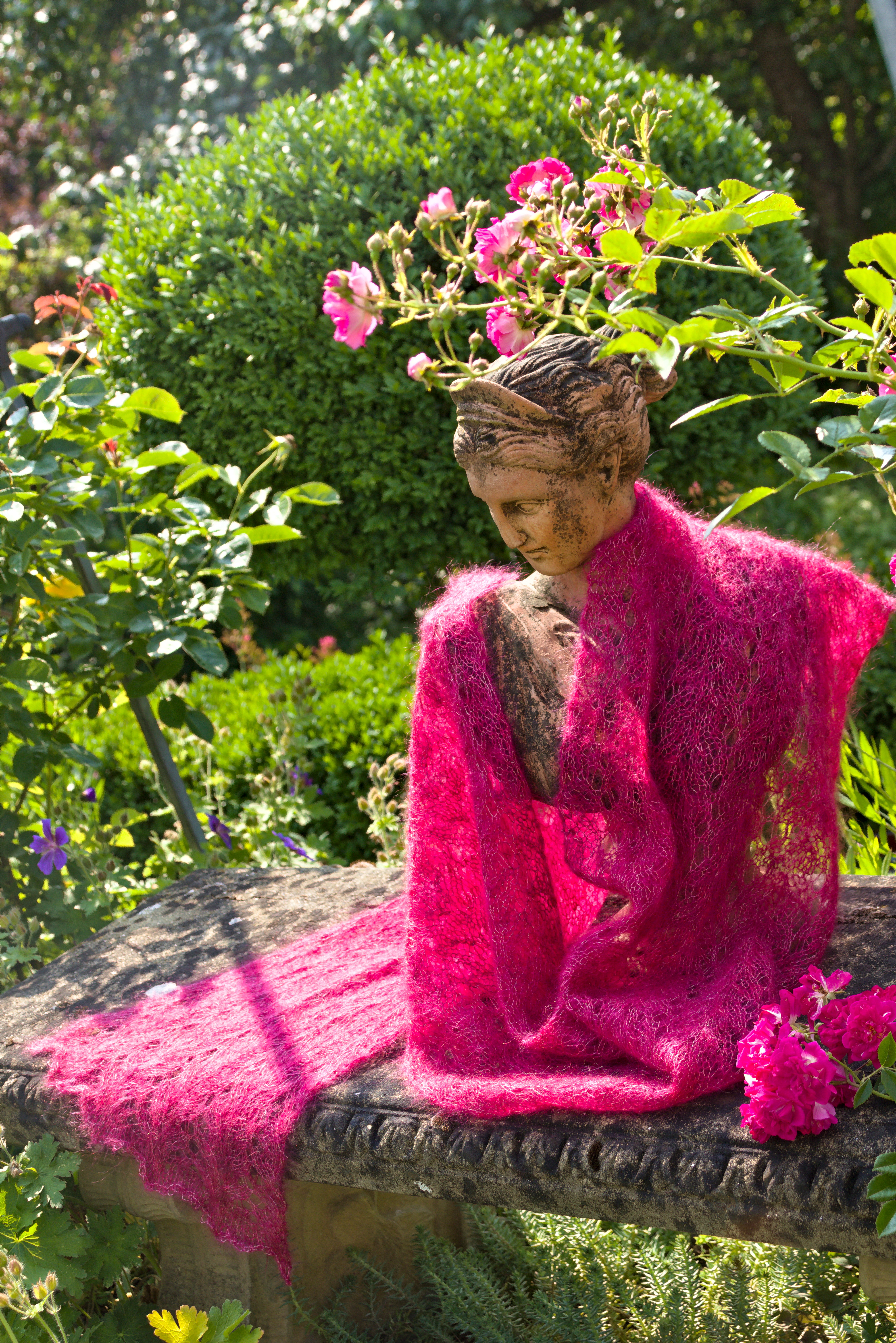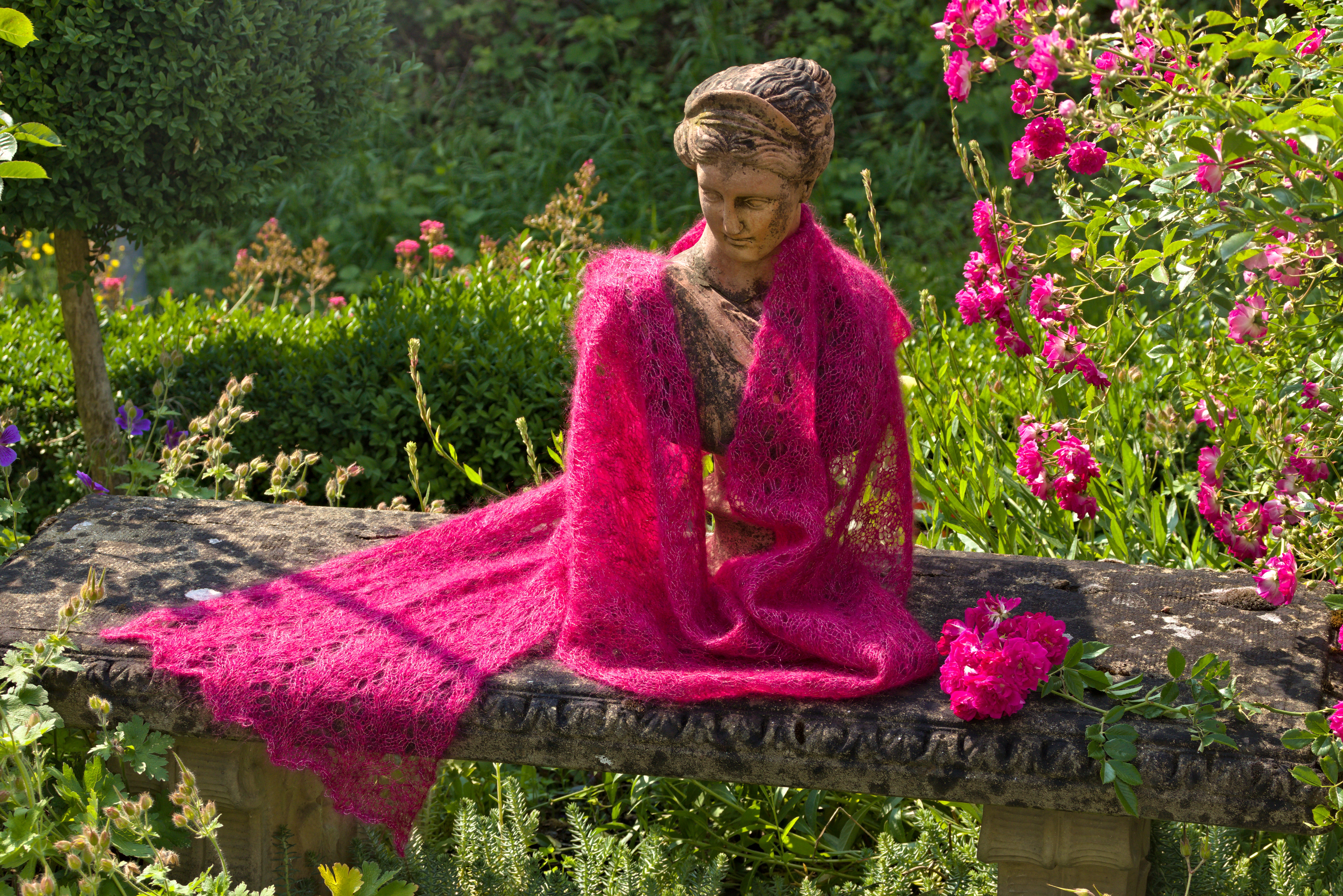 Der „kleine Sommertraum” besticht durch sein malerisch florales Muster. Er ist aus herrlich weichem Kid-Mohair gestrickt und passt zu einem duftigen Sommerkleid genausogut wie zu einer flotten Jeans. Er eignet sich auch als ausgefallenes Geschenk zum Muttertag.