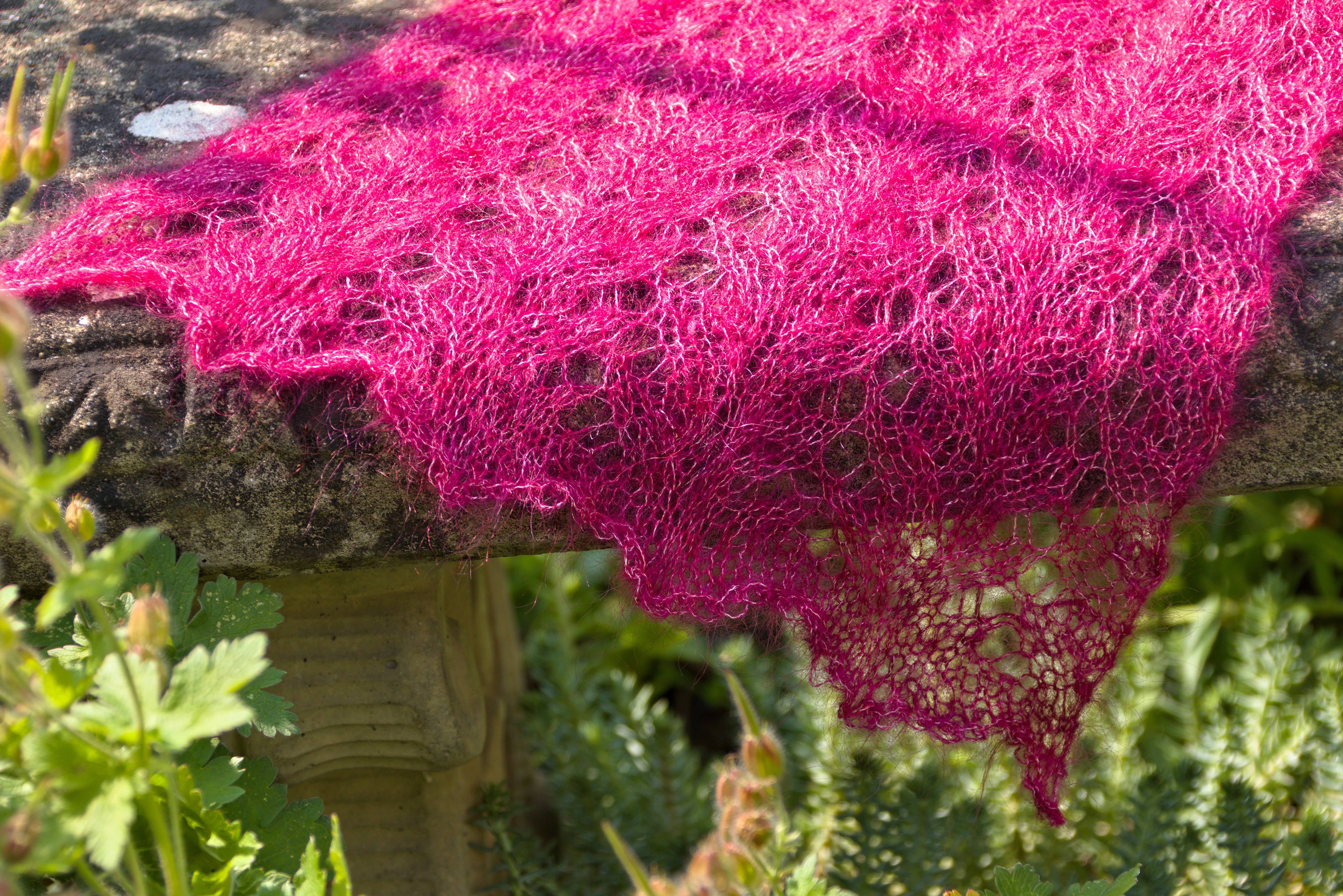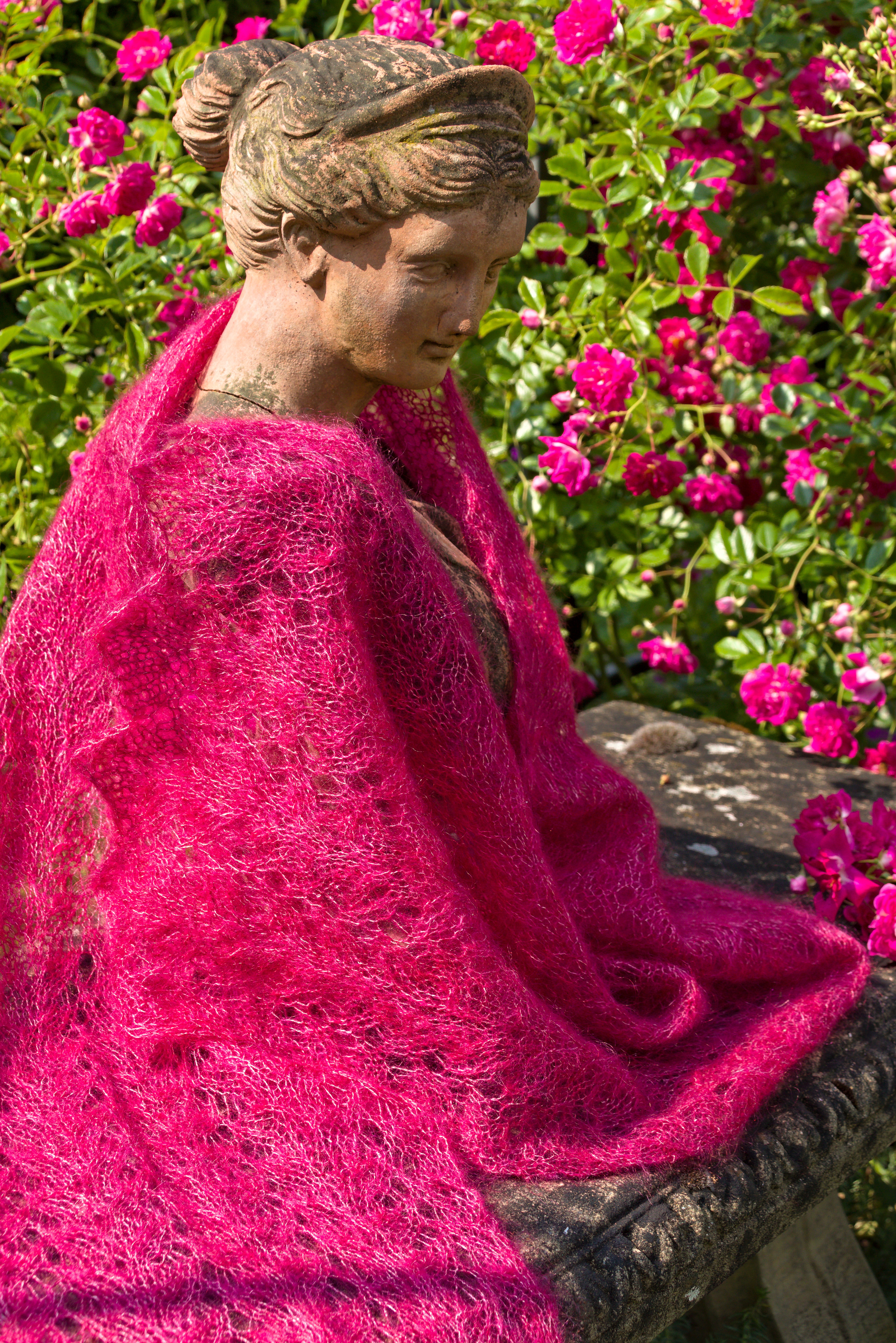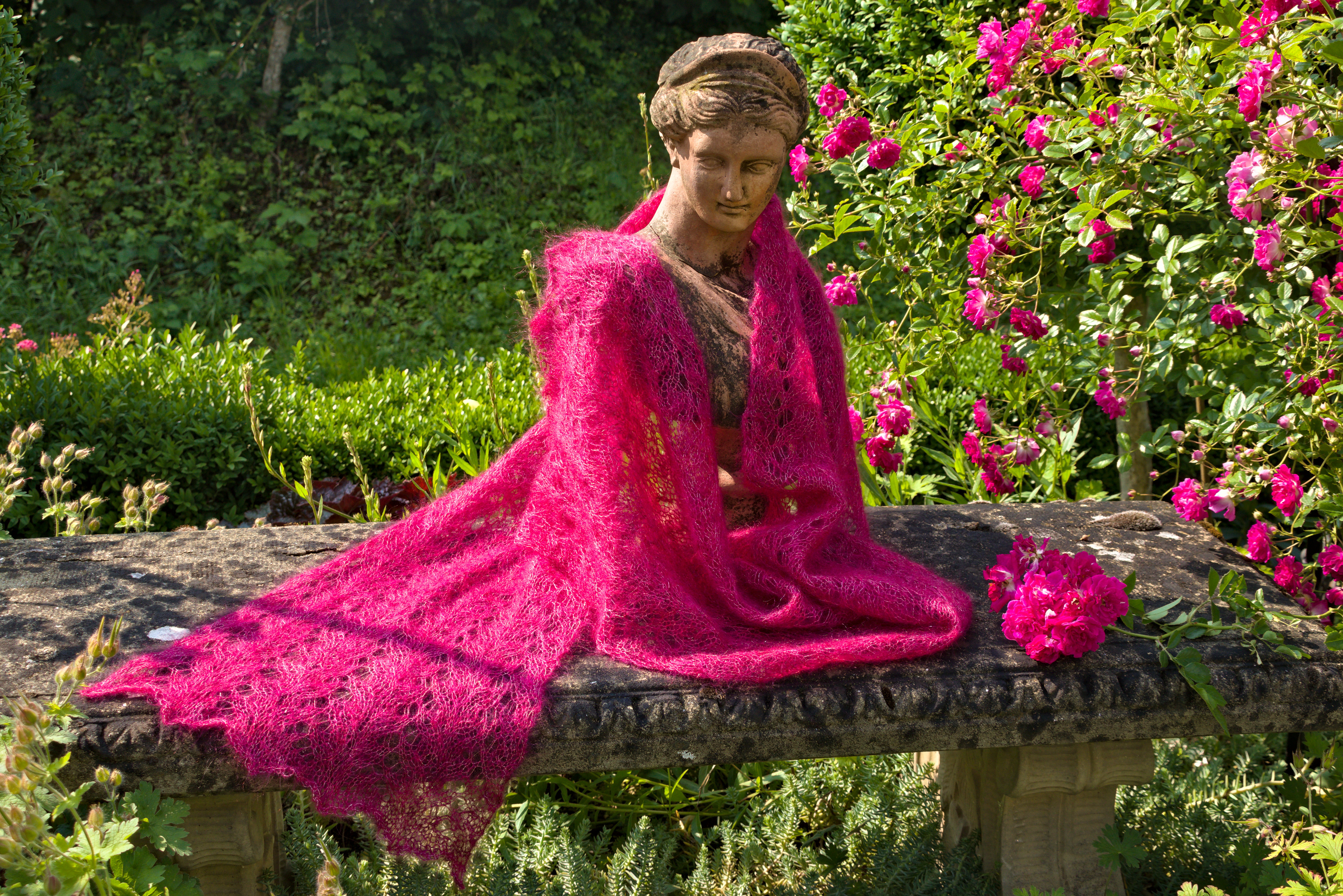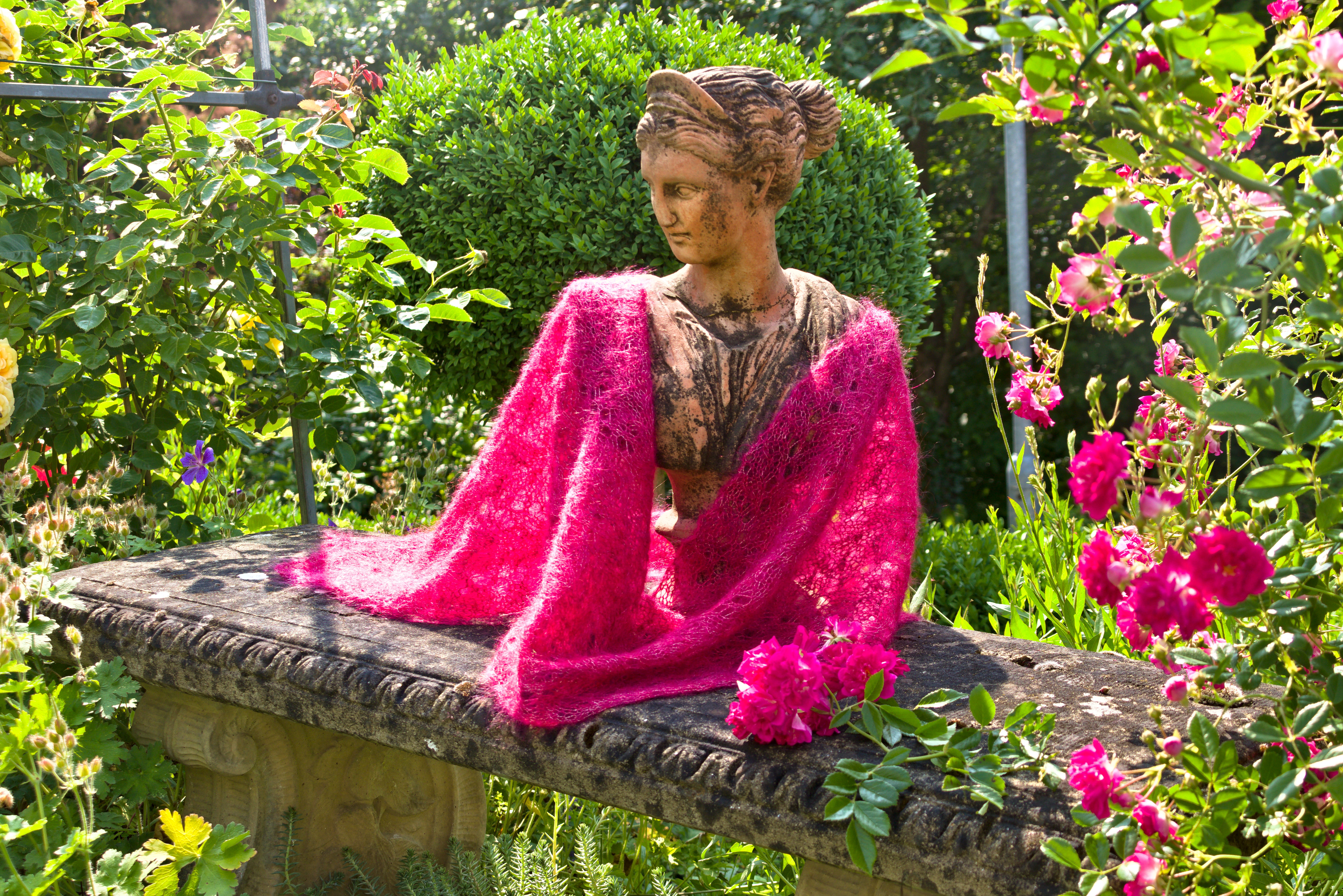 Der „kleine Sommertraum” besticht durch sein malerisch florales Muster. Er ist aus herrlich weichem Kid-Mohair gestrickt und passt zu einem duftigen Sommerkleid genausogut wie zu einer flotten Jeans. Er eignet sich auch als ausgefallenes Geschenk zum Muttertag.